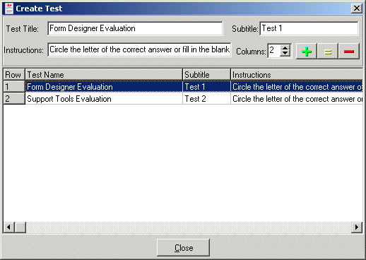 To create a new test or to edit a test, select Edit from the Test menu.  Use the edit boxes at the top of the screen to edit the test information and use the Add, Update, and Remove buttons to execute any changes to a test description.