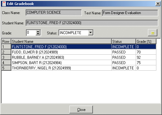 Grades can be automatically record as students take each test via the Test Taker application.  However, if a test grade needs to be manually altered you may select Edit from the Gradebook menu.