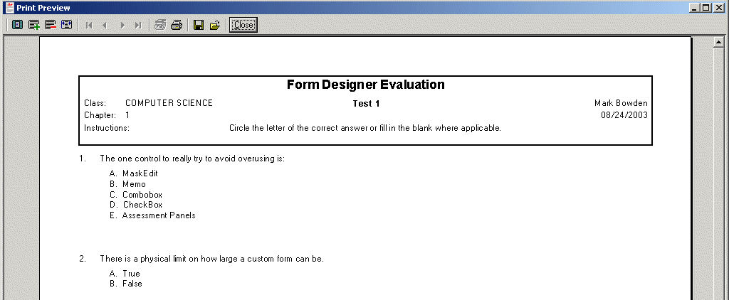 Print Previewing a Test
